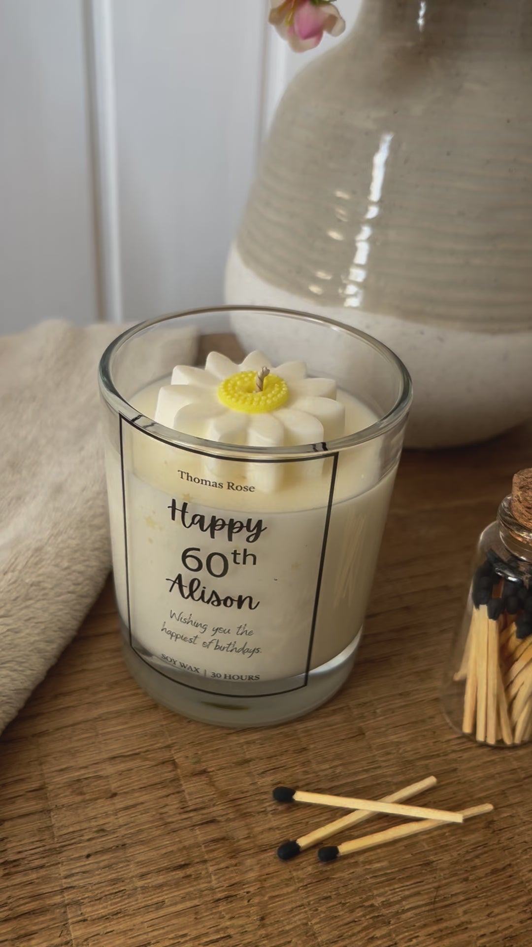 Personalised Birthday Candle Gift! - Can be customised for any age. Handmade from natural soy wax, it’s got a lovely strong scent that fills the room and creates a cosy vibe. You can add your own custom message to make it really personal — perfect for him or her.